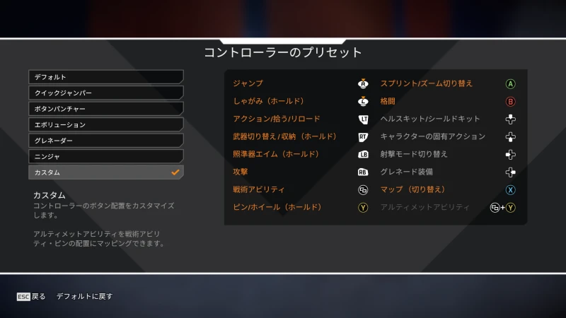 - 親指を右スティックに置いたままジャンプ/しゃがみ/アビリティが押せる