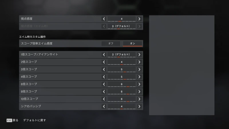 APEXの詳細設定では、デッドゾーンを数値でいじれます。
